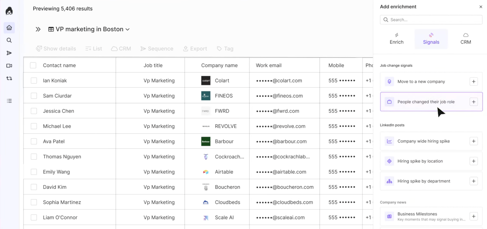 Lusha’nın Signals katmanı; job changes, news ve diğer satın alma sinyallerini izlemeye yardımcı olur. Intent data ve buying signals sayesinde ekipler yalnızca kime ulaşacaklarını değil, ne zaman ulaşmaları gerektiğini de daha iyi belirleyebilir.