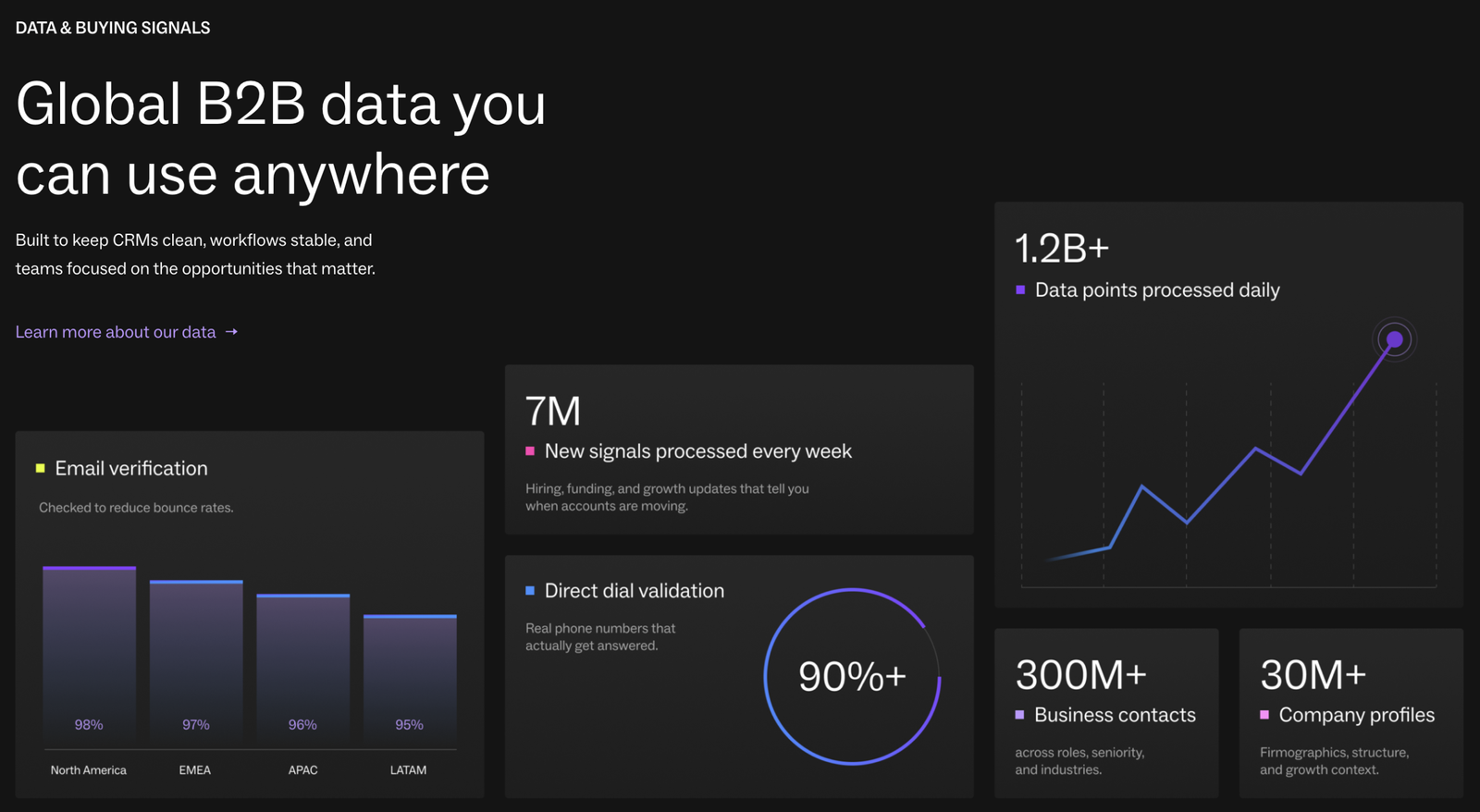 Doğrulanmış B2B veri ile daha hızlı prospecting yapılmasını sağlar.
