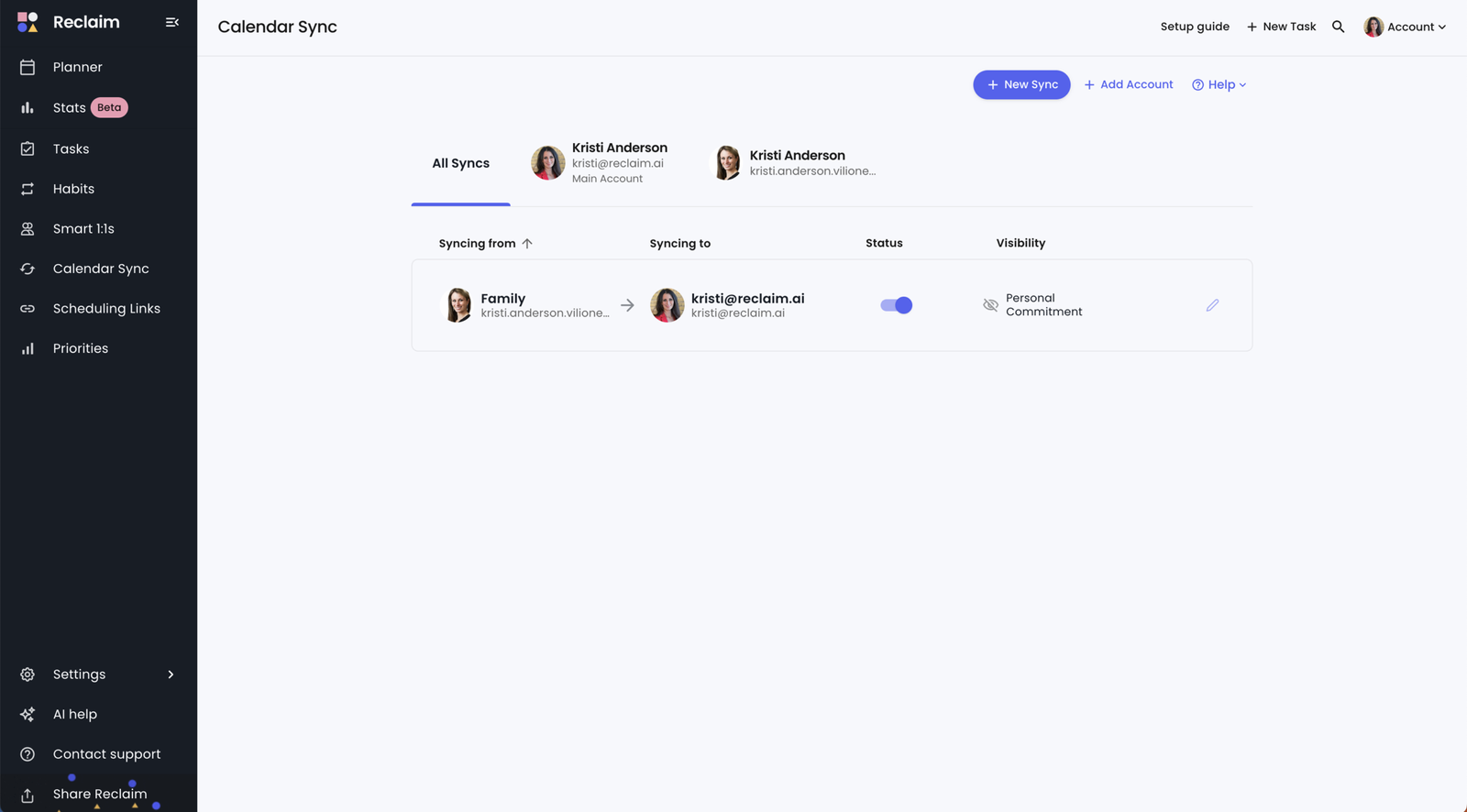 Reclaim.ai farklı takvimleri senkronize eder.