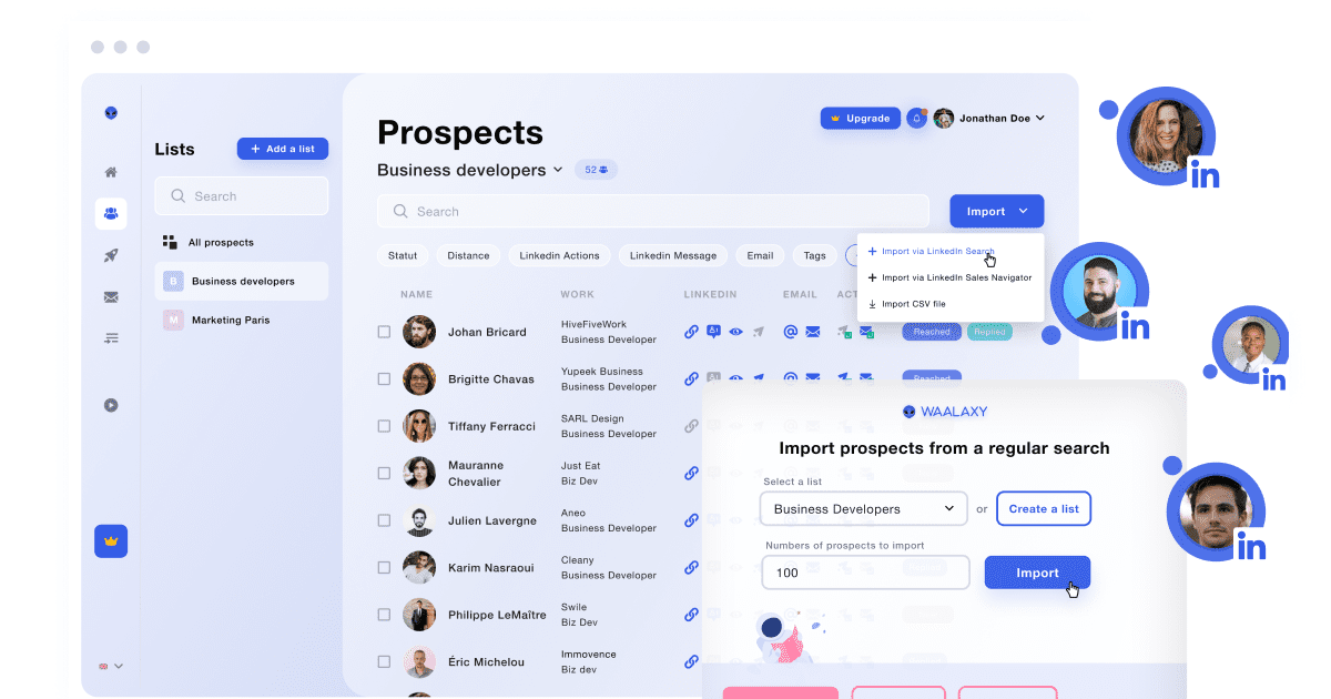 Günümüzde B2B satışın en önemli kaynaklarından biri LinkedIn’dir. Ancak manuel olarak bağlantı kurmak, mesaj göndermek ve takip yapmak oldukça zaman alıcıdır. Waalaxy bu süreci otomatikleştirerek kullanıcıların daha fazla potansiyel müşteriye daha kısa sürede ulaşmasını sağlar.
